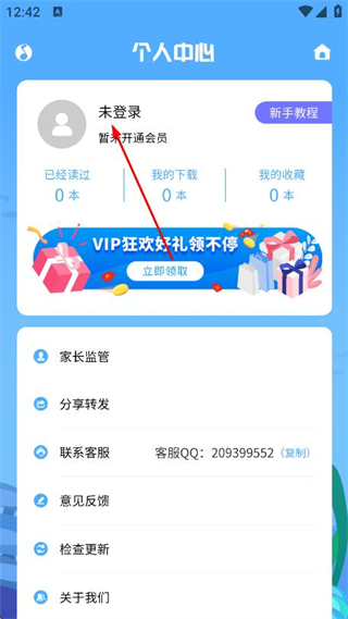2、在個(gè)人中心頁(yè)面中,找到并點(diǎn)擊上方的未登錄區(qū)域。