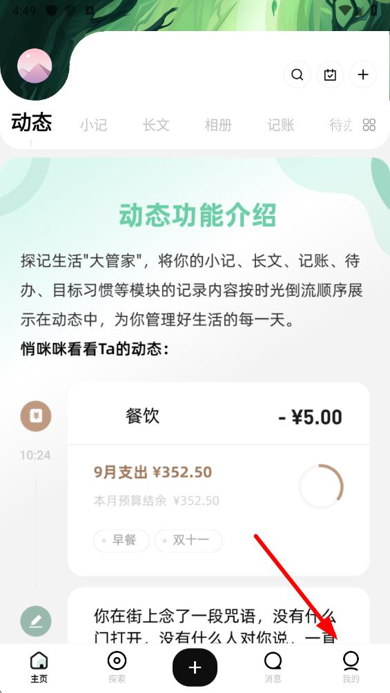 1、打開探記app,點(diǎn)擊底部導(dǎo)航欄中我的圖標(biāo),進(jìn)入個(gè)人相關(guān)界面。