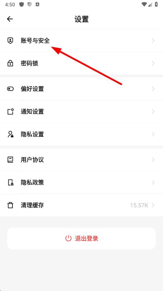 3、在設(shè)置頁面里,點(diǎn)擊賬號(hào)與安全選項(xiàng),進(jìn)入賬號(hào)安全相關(guān)設(shè)置界面。