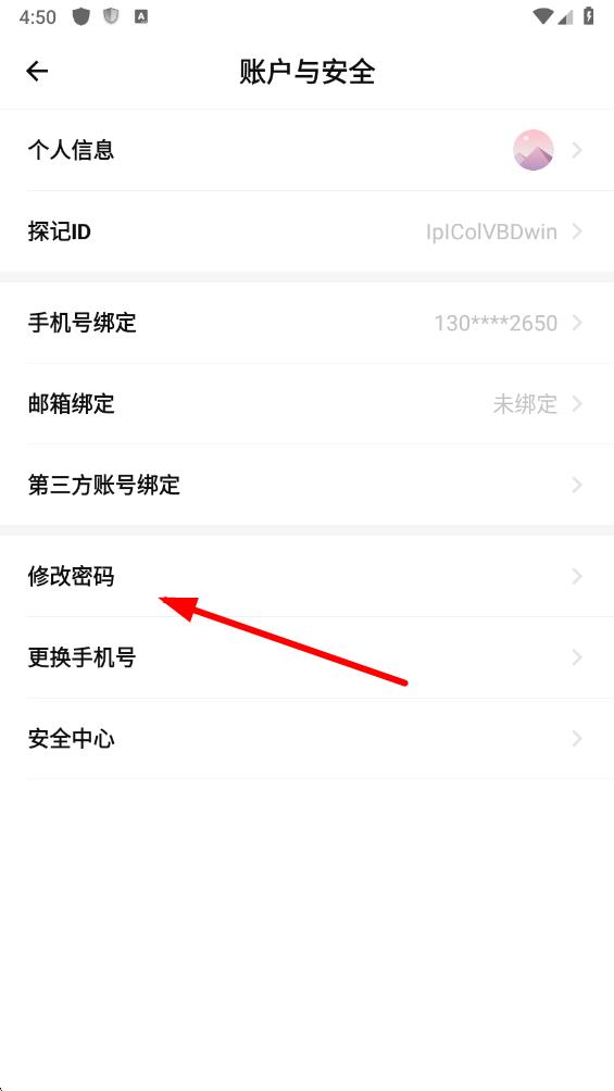 4、在賬號(hào)與安全界面中,點(diǎn)擊修改密碼選項(xiàng),進(jìn)入密碼重置界面。