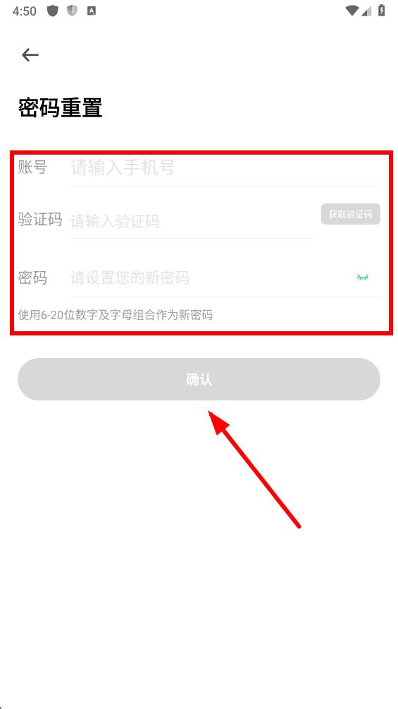 5、按要求輸入手機(jī)號(hào)、獲取并輸入驗(yàn)證碼,設(shè)置新密碼后,點(diǎn)擊確認(rèn),即可完成登錄密碼修改。