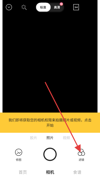2、在相機(jī)界面,點(diǎn)擊底部右側(cè)濾鏡圖標(biāo),展開(kāi)濾鏡選擇欄。