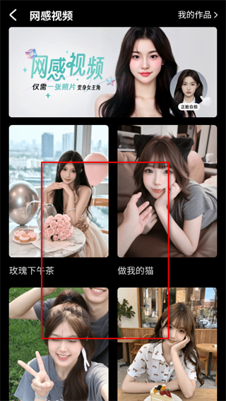 3、選擇網(wǎng)感視頻中的模板,玫瑰下午茶做我的貓等,進(jìn)入模板詳情頁(yè)。