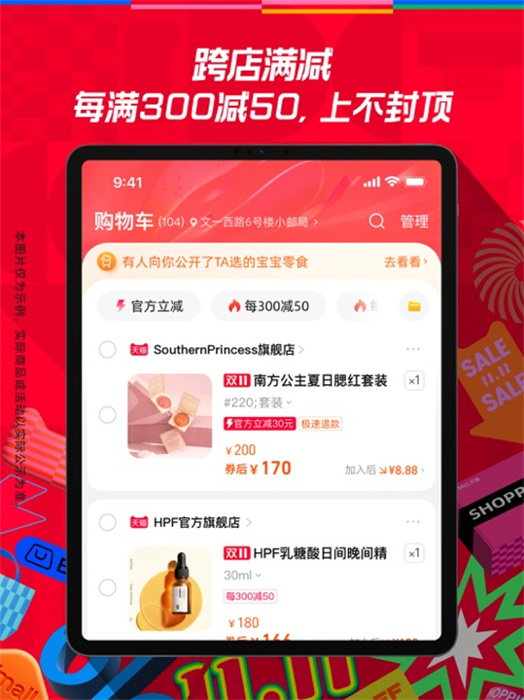 2. 跨店滿減商品,每滿300減50,上不封頂