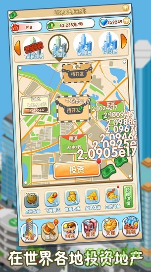 首富傳說是一款趣味十足的休閑模擬經(jīng)營游戲,游戲操作簡單,但也需要玩家發(fā)揮自己的聰明才智合理分配自己的資產(chǎn),從而更快的提高自己的收入。游戲中不僅可以建造各類的商鋪,還可以在世界各個大都市投資地產(chǎn),體驗做商業(yè)大佬的快感。全新的天梯玩法則是靠玩家自己的排兵布陣來打敗對手,成為最強的商戰(zhàn)王者??靵硎赘粋髡f發(fā)展屬于你自己的事業(yè),鑄造屬于你自己的商業(yè)帝國,成就一個輝煌的時代。