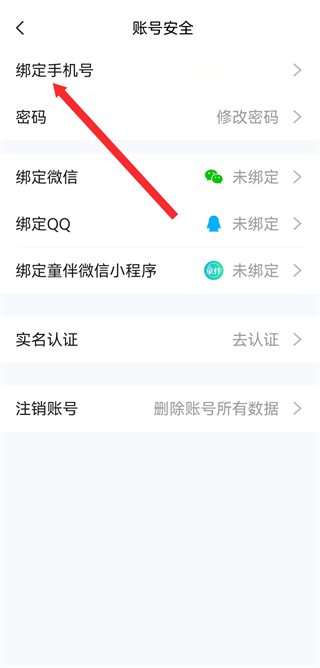 3、在賬號(hào)安全頁面,點(diǎn)擊綁定手機(jī)號(hào),進(jìn)入舊手機(jī)號(hào)解綁頁面。