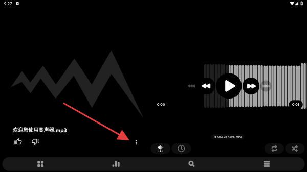 1、打開poweramp軟件,在首頁內(nèi)點擊正中間三個點的圖標。