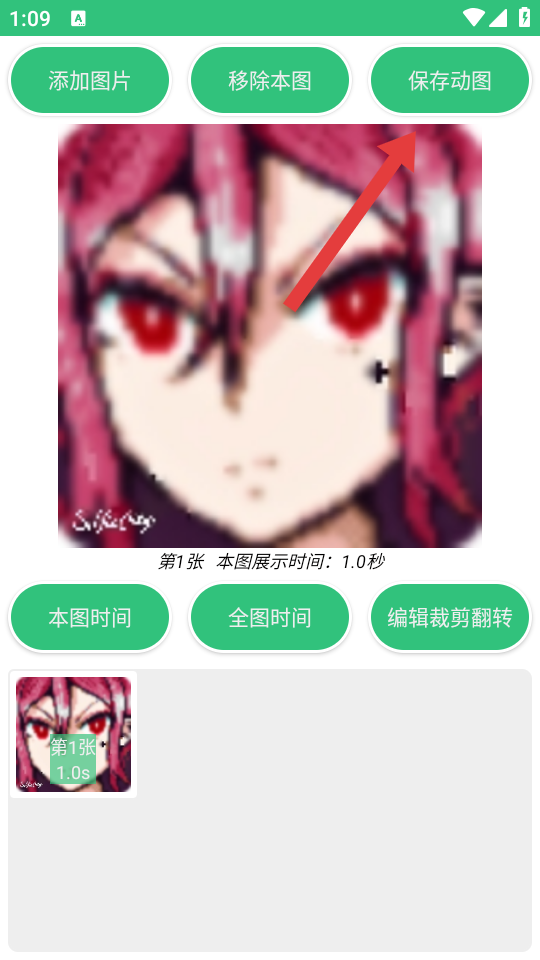 4、在編輯頁面可設(shè)置本圖時間等參數(shù),設(shè)置完成后點擊保存動圖,完成制作。