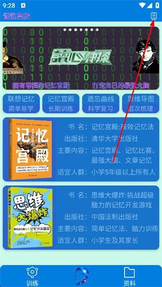 1、打開記憶宮殿app,找到并點(diǎn)擊右上角的菜單按鈕。