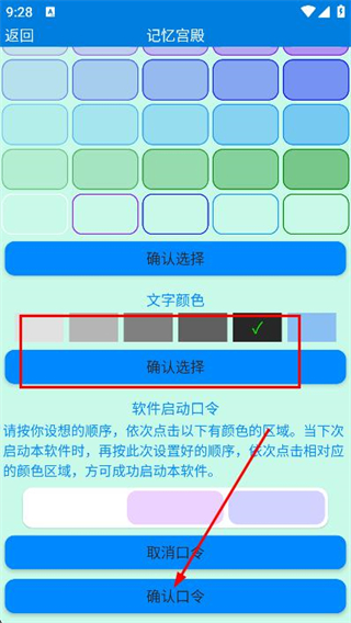 4、在文字顏色區(qū)域選擇顏色,點(diǎn)擊確認(rèn)口令即可修改顏色。