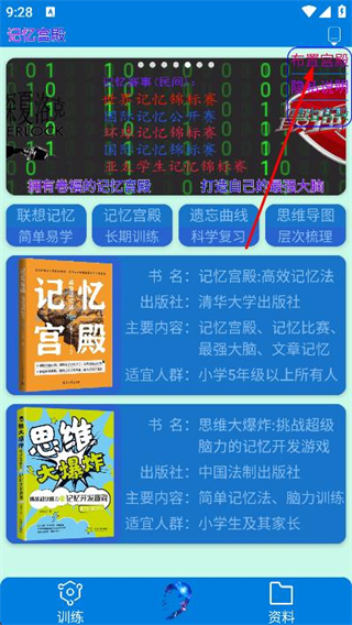 記憶宮殿app安卓版是一款訓(xùn)練記憶力的手機(jī)軟件,用戶通過這款軟件可以十分方便的進(jìn)行左腦開發(fā)的記憶訓(xùn)練,提升自己的記憶力,除此之外,還可以進(jìn)行速讀訓(xùn)練,讓你的速讀能力大大提高,更有世界腦力錦標(biāo)賽比賽項(xiàng)目訓(xùn)練,讓你的記憶能力飛速提升,有需要的朋友們快來下載吧。