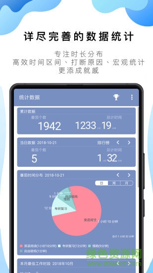 第四式:完備的數(shù)據(jù)分析,給予你極大的成就感的同時能夠分析您的高效時刻。并提供日、周、月的時段分析,以及詳細的歷史記錄