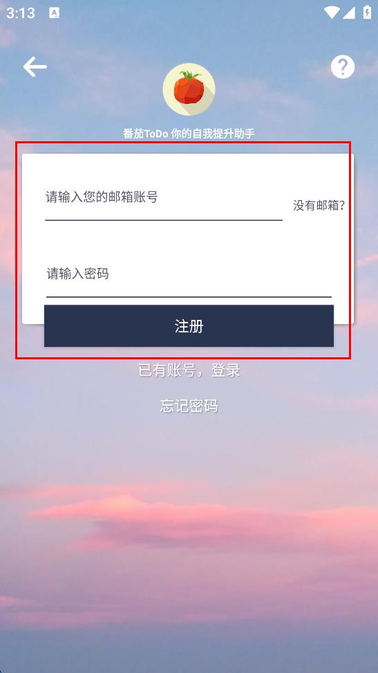 4、在注冊頁面,輸入郵箱賬號和密碼,點擊“注冊”按鈕,完成注冊,之后可登錄使用APP。
