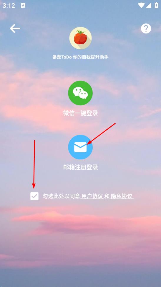 3、在登錄選擇界面,勾選同意用戶協(xié)議和隱私協(xié)議,選擇“郵箱注冊登錄”,進入注冊頁面。