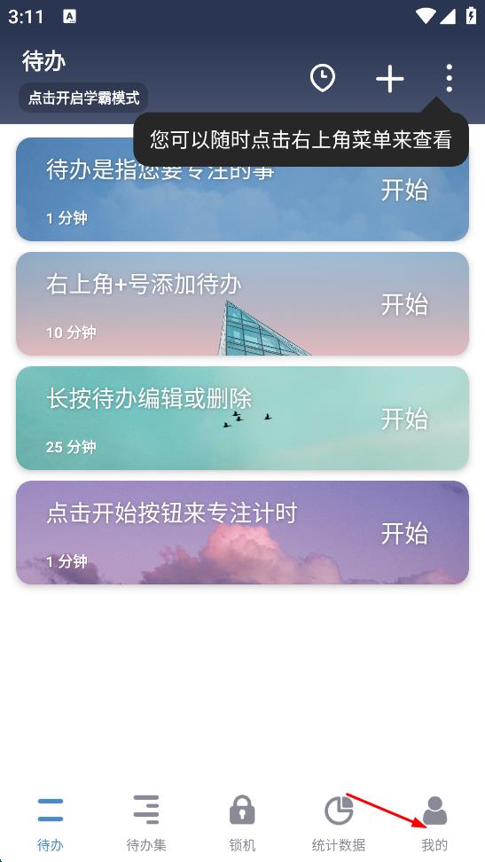 1、打開番茄ToDo APP,點擊頁面底部“我的”選項,進入個人頁面。