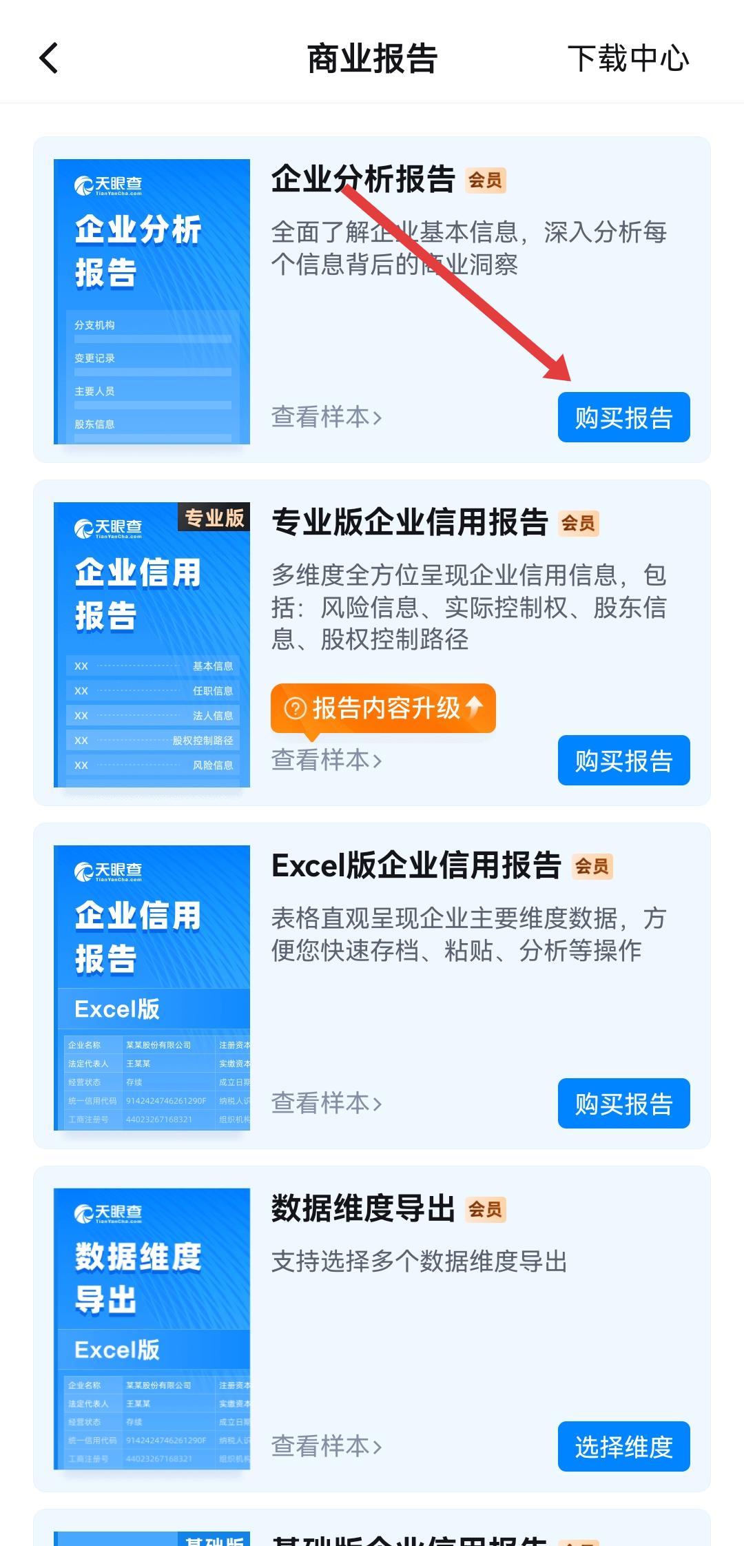 3、在報告列表中選擇需要的報告類型,點擊右側(cè)購買報告按鈕,按提示完成付費后即可下載報告。