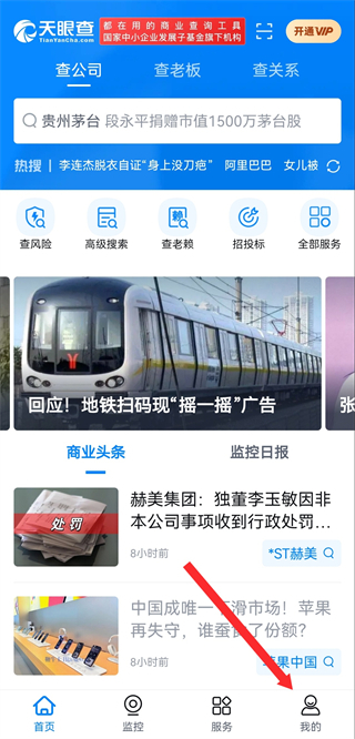 1、打開天眼查APP,點擊右下角我的按鈕,進(jìn)入個人頁面。