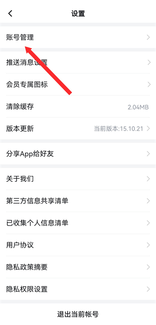 3、在設(shè)置頁面中,點擊賬號管理的選項,進(jìn)入賬號管理頁面。