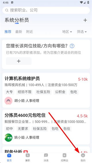1、在俊才網(wǎng)app首頁(yè)點(diǎn)擊底部我的選項(xiàng),進(jìn)入個(gè)人頁(yè)面。