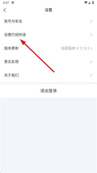 3、在設(shè)置頁(yè)面點(diǎn)擊設(shè)置打招呼語(yǔ)選項(xiàng),進(jìn)入設(shè)置招呼語(yǔ)頁(yè)面。