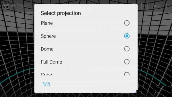 右上角第二個(gè)選項(xiàng):看360度VR視頻”時(shí)選擇Sphere,看3D視頻時(shí)選擇Plane。