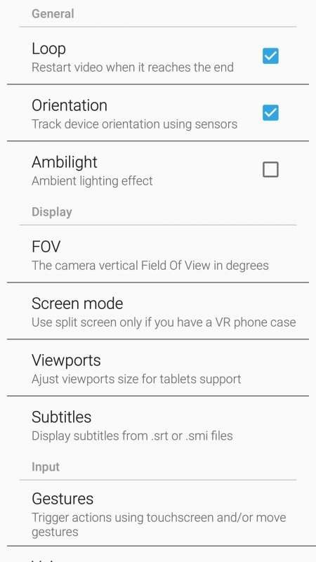 第二個(gè)是方向設(shè)定,打開后可以用陀螺儀轉(zhuǎn)換方向(看360度VR視頻必須打開,不然無法轉(zhuǎn)視角),關(guān)閉后視角固定(適合觀看3D、2D電影)。