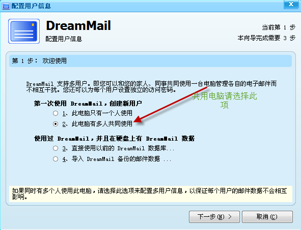1、夢幻快車支持多用戶使用,即如果您是跟家人、朋友或者同事一些共用一臺電腦收發(fā)各自的電子郵件,可以不同的用戶設(shè)置不同的夢幻快車用戶管理密碼,而且假如您已經(jīng)在本機(jī)上使用的夢幻快車,可以直接導(dǎo)入以前的數(shù)據(jù)庫,而不要擔(dān)心郵件的丟失。操作如下圖: