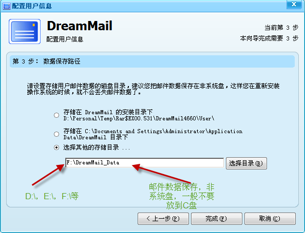2. 確保不安裝在系統(tǒng)盤。否則,如果UAC打開時,可能會無法保存郵件,導(dǎo)致郵件數(shù)據(jù)丟失;