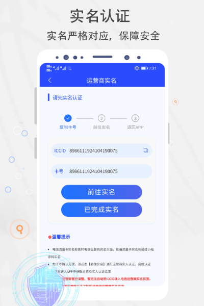 一機一卡一設(shè)備需實名認證并對應(yīng),保障安全