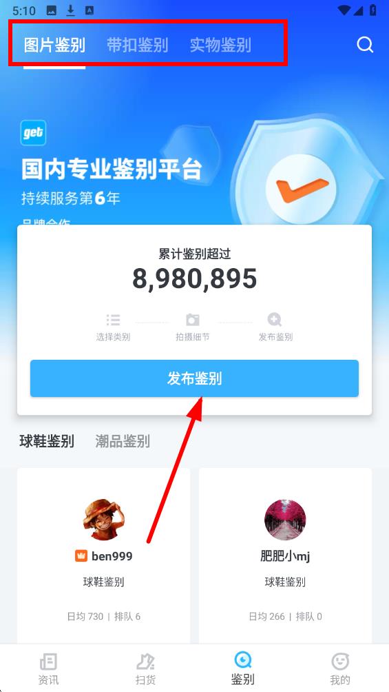 2、在鑒別頁面上方,可看到不同的鑒別方式,選擇適合自己的鑒別方式后,點(diǎn)擊發(fā)布鑒別按鈕,準(zhǔn)備進(jìn)行下一步操作。