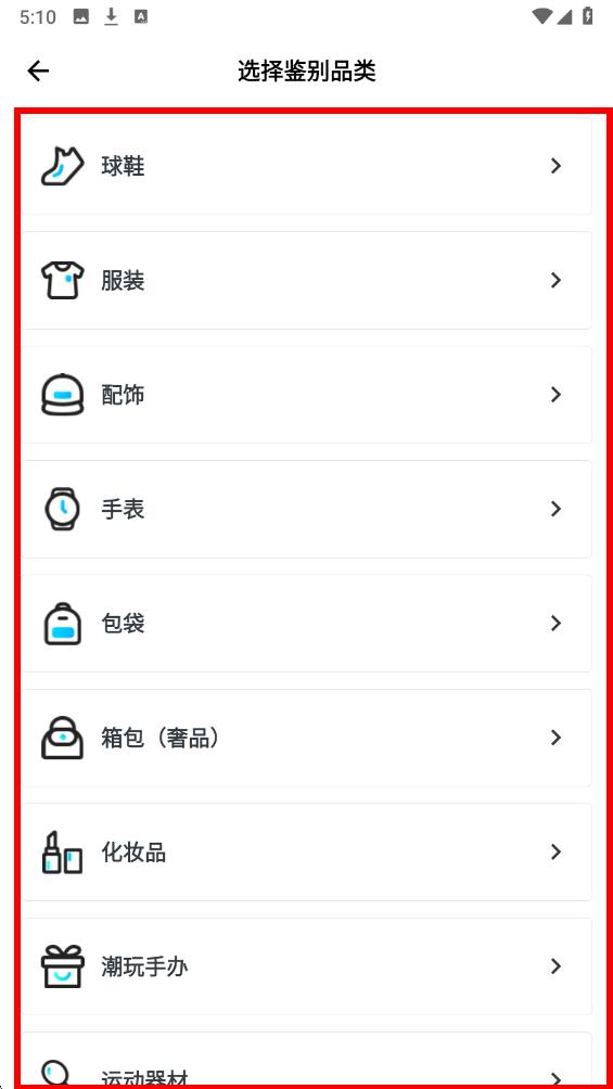 3、這里有多種品類可供選擇,選擇你需要鑒別的商品品類,按照后續(xù)提示拍攝并上傳商品細(xì)節(jié)圖片,填寫相關(guān)信息,提交后等待專業(yè)鑒定師的鑒定結(jié)果。