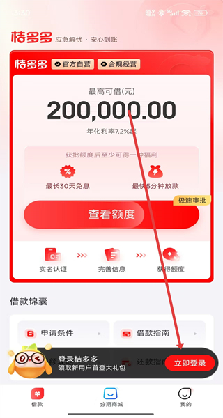 2、在進(jìn)入到app中,可以點(diǎn)擊下方的立即登錄按鈕,進(jìn)行登錄操作。