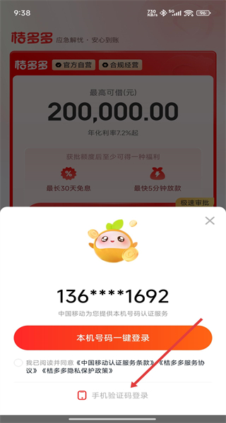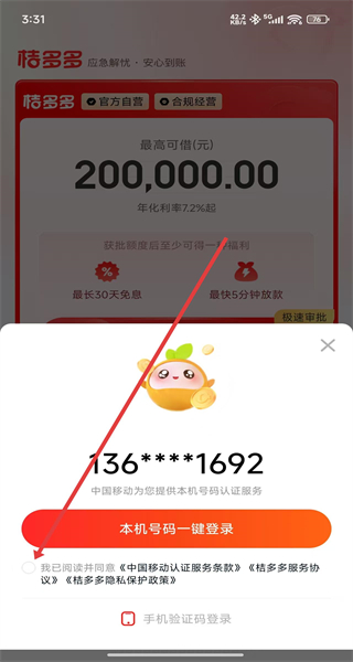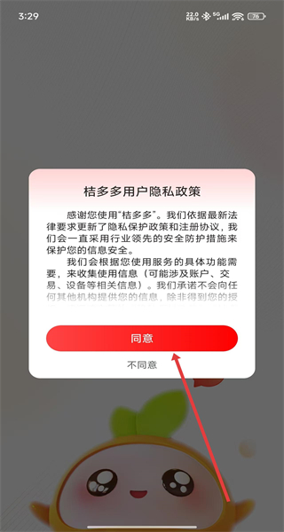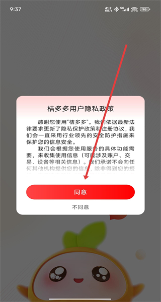 1、點(diǎn)擊“桔多多用戶隱私政策”彈窗的“同意”,進(jìn)入登錄選擇頁(yè)面。