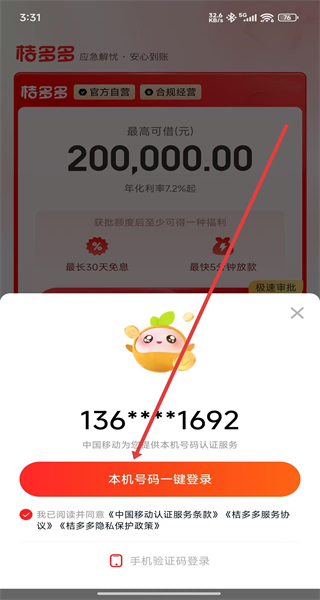 4、在勾選好同意按鈕后,可以點(diǎn)擊本機(jī)號(hào)碼一鍵登錄,若該號(hào)碼未注冊(cè)過(guò)也一并完成注冊(cè)登錄。