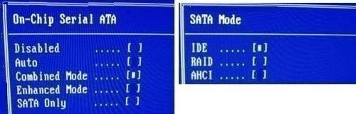 請(qǐng)?jiān)O(shè)置BIOS:硬盤模式設(shè)置成AUTO或Combined或Compatible,SATA模式設(shè)置AUTO或IDE或ATA(有的電腦必須設(shè)置成AHCI),如下圖: