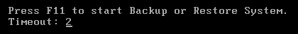 啟動(dòng)過程中將自動(dòng)跳過3個(gè)額外菜單,直達(dá)一鍵備份或一鍵恢復(fù)警告對(duì)話框(10秒后自動(dòng)執(zhí)行)