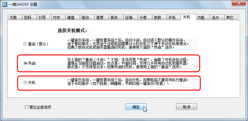 * 設(shè)置關(guān)機(jī)模式(2017版,增設(shè)"熱啟"選項(xiàng),以解決少數(shù)電腦"重啟"時(shí)死機(jī)問題)