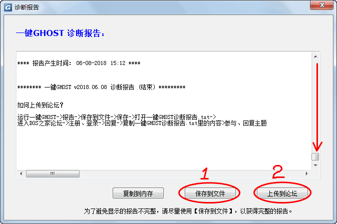 回復(fù)時(shí),請(qǐng)復(fù)制“一鍵GHOST診斷報(bào)告.txt”里的全部?jī)?nèi)容后粘貼,以供大家?guī)椭惴治鲈蚝徒鉀Q問題,也有利于軟件的日后改進(jìn)。