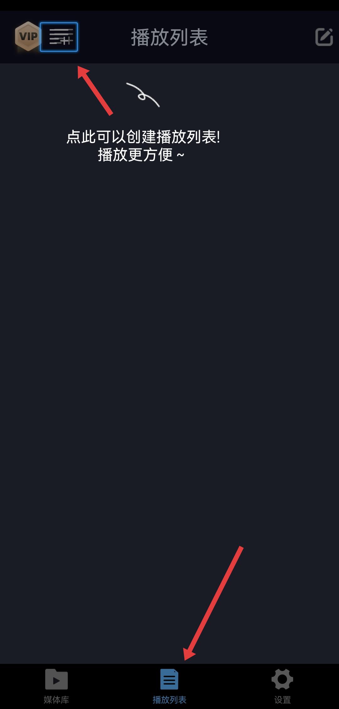 1、進(jìn)入播放列表頁面后,點(diǎn)擊左上角的列表加號圖標(biāo),觸發(fā)新建功能。