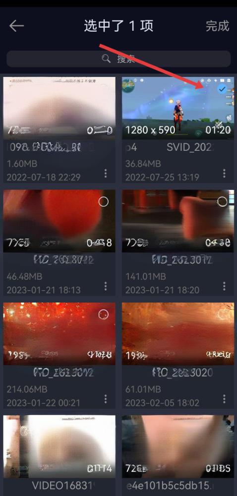 3、進(jìn)入視頻選擇頁面,勾選需要加入播放列表的視頻,選好后點(diǎn)擊完成。