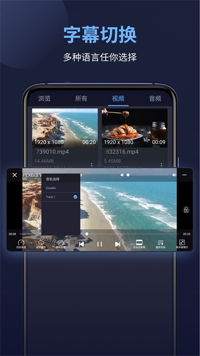 萬能電影播放器是一個手機(jī)全能視頻播放器,支持所有視頻、音頻格式!播放器有4種播放畫面,分別是android系統(tǒng)默認(rèn)全屏畫面、覆蓋手機(jī)全屏畫面、擴(kuò)大畫面、視頻原始畫面。