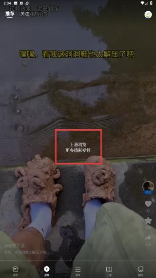 2、在視頻的頁面,會(huì)自動(dòng)呈現(xiàn)出較熱門的視頻,根據(jù)文字提示:上滑瀏覽更多精彩視頻進(jìn)行操作。