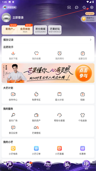1、打開芒果tv的應(yīng)用APP,進(jìn)入首頁點擊右下角我的圖標(biāo)。