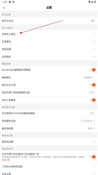 3、進(jìn)入設(shè)置的界面內(nèi),找到并點擊未成年人模式的按鈕。