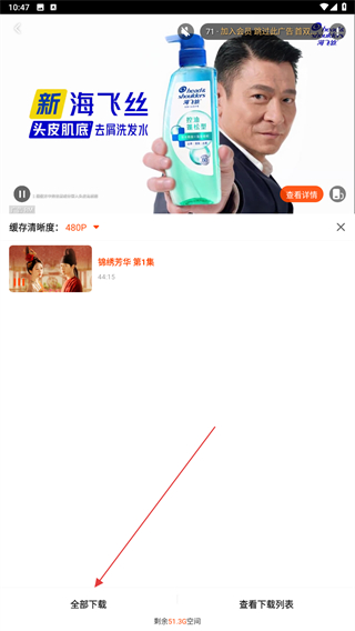 3、進(jìn)入播放的頁面內(nèi),點擊下方緩存的功能按鈕。