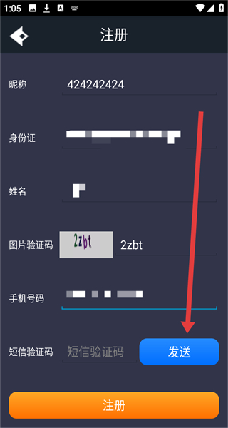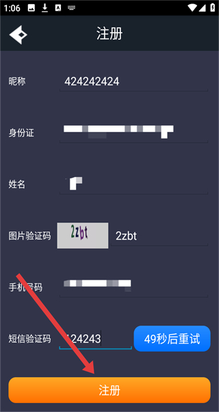 4、輸入短信驗證碼后點擊“注冊”,完成賬號注冊操作。