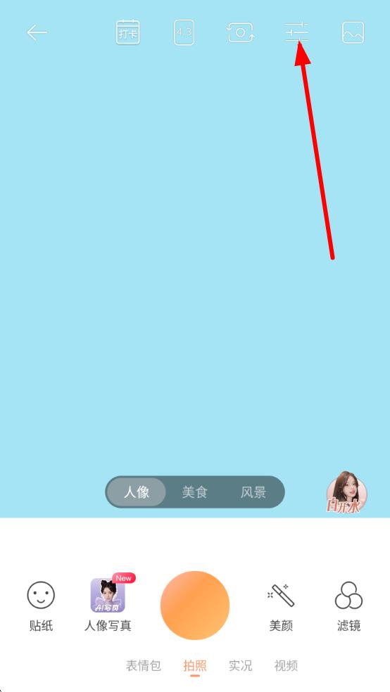 2、在拍攝界面中,點擊屏幕上方類似三條橫線疊加的設(shè)置按鈕,展開拍攝設(shè)置選項。
