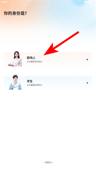 4、選擇身份類型,如職場人,即可完成賬號登錄。