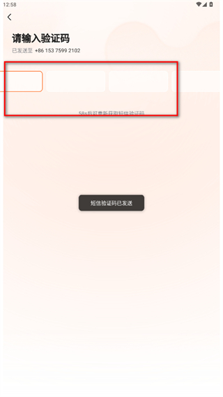 3、在驗證碼輸入界面,輸入收到的短信驗證碼。