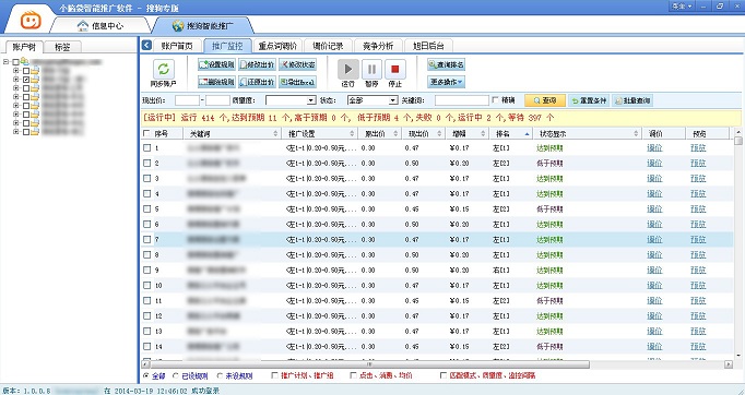 搜狗版競價推廣監(jiān)控會根據(jù)您的需要自動智能出價,不限詞數(shù)